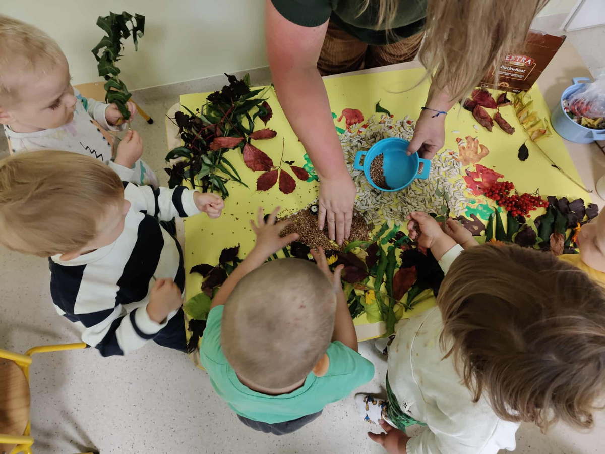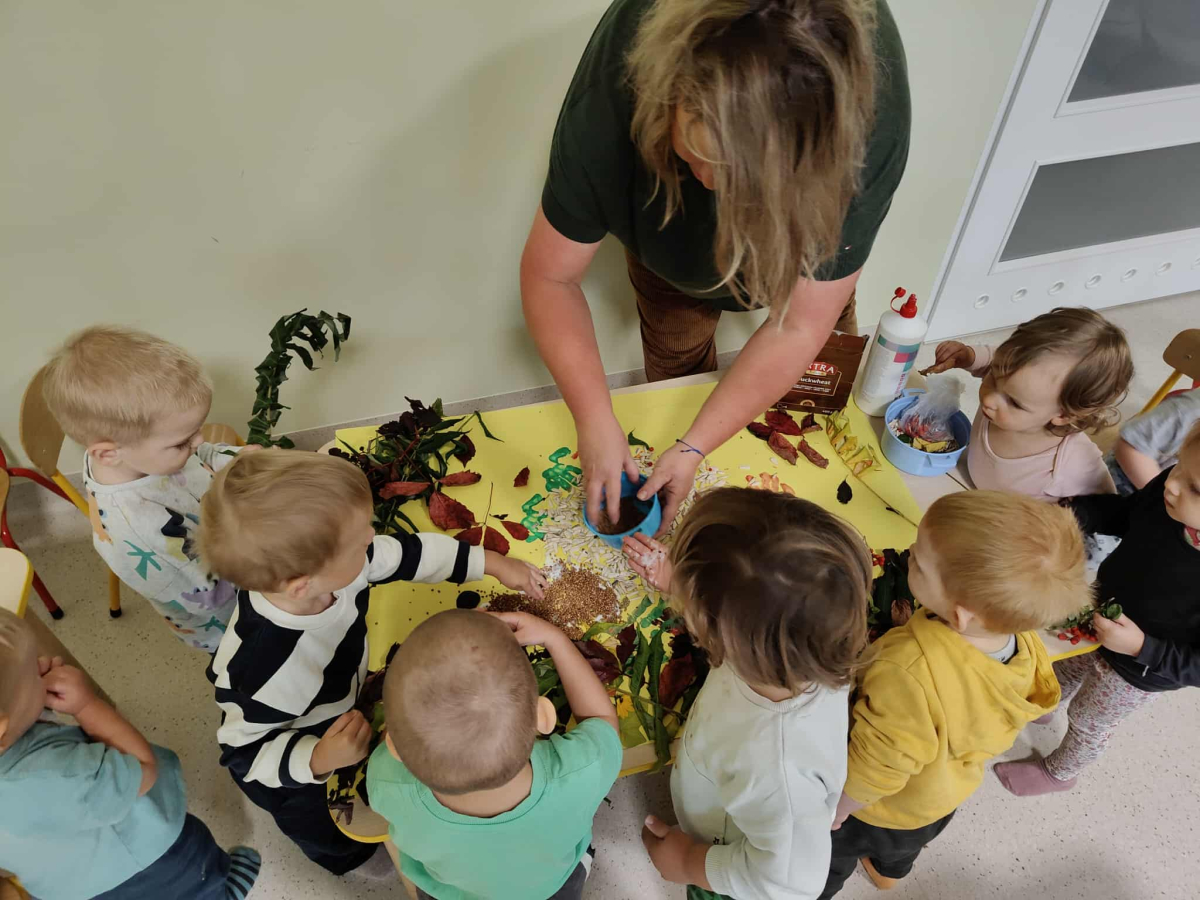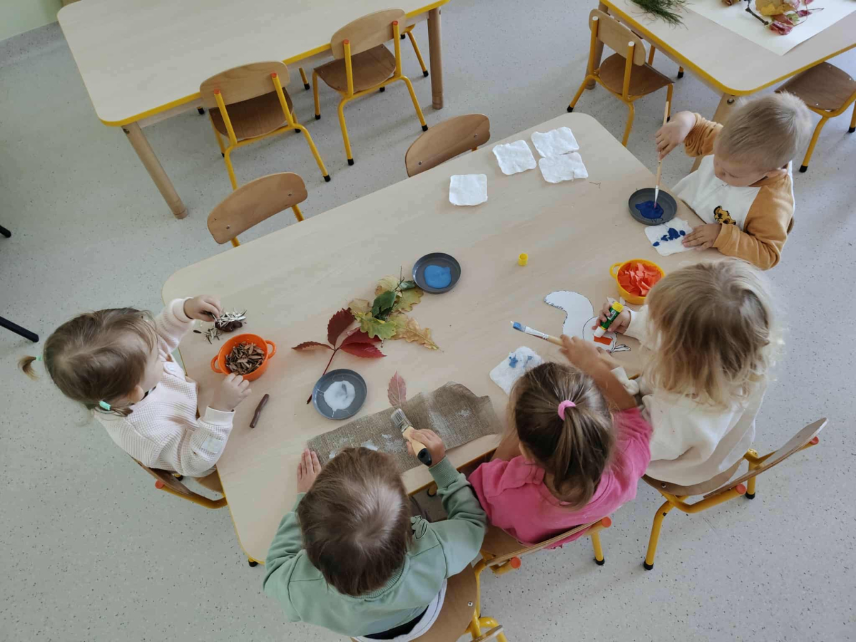 We wrześniu dzieci ze starszych grup: Sówki i Zajączki wzięły udział w konkursie plastycznym „Sensoryczna jesień” zorganizowanym przez I Ogólnopolskie Stowarzyszenie Publicznych i Niepublicznych Żłobków i Klubów Dziecięcych, i przygotowały prace konkursowe.