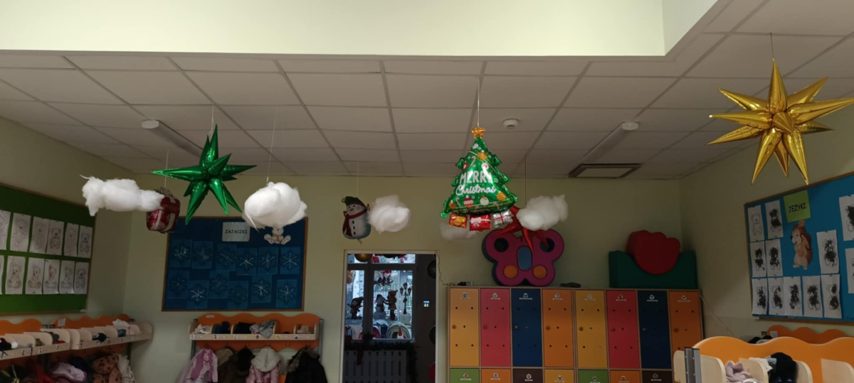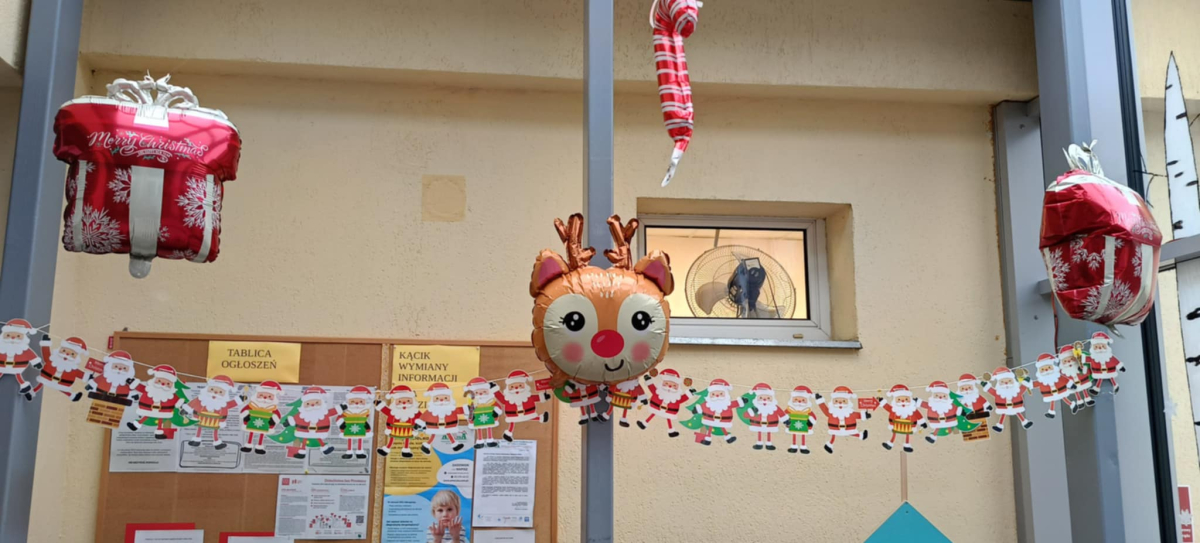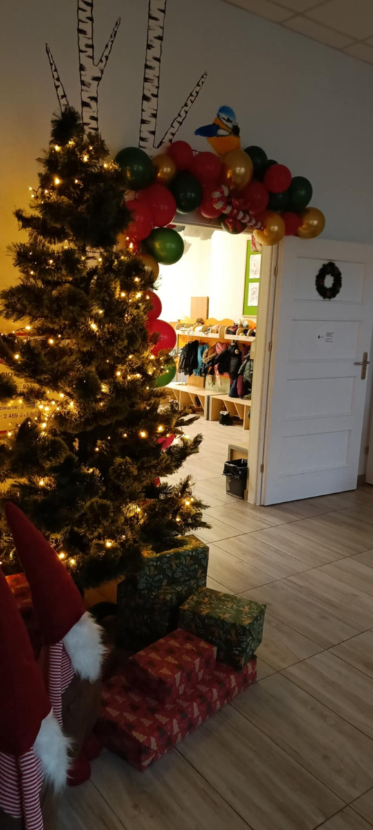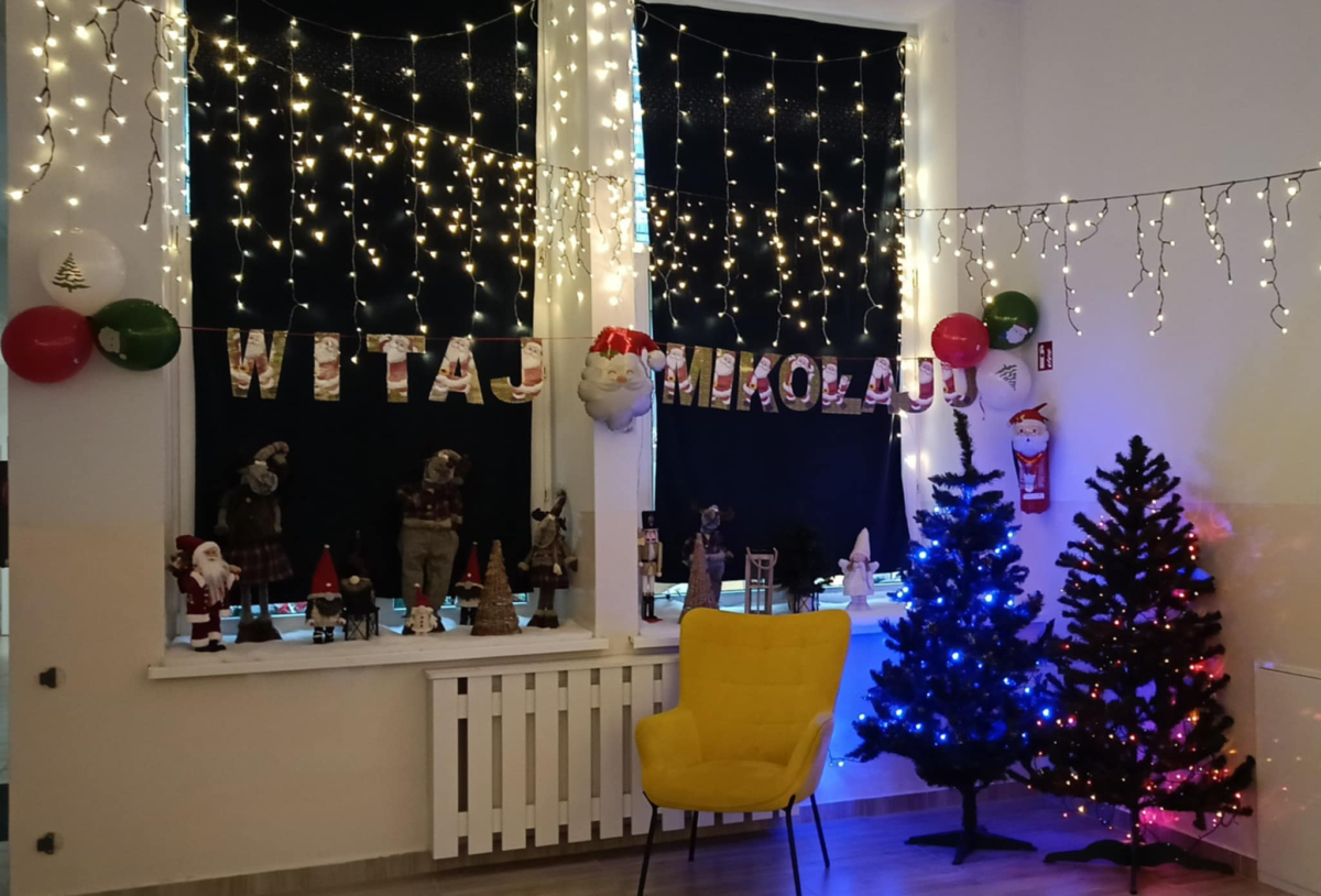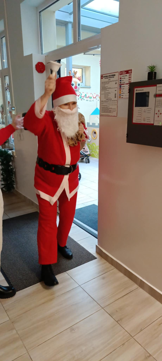 Po śniadaniu na zaproszenie pani Ani i pani Uli wyszliśmy na odświętnie udekorowany hol. Czerwone stroje i radosna atmosfera zapowiadała wizytę specjalnego gościa.