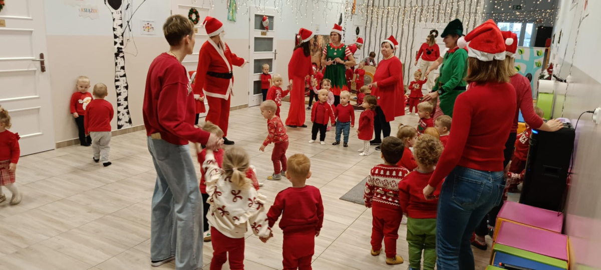 Mikołajki w żłobku to ważne wydarzenie szczególnie dla dzieci. W piątek 5 grudnia 2025 roku pomocnicy Mikołaja już od rana witali wszystkich wchodzących do naszego żłobka i częstowali słodyczami.