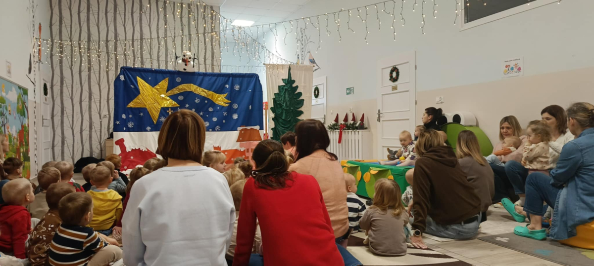 Maluszki z dużym zainteresowaniem oglądały wesołą, świąteczną bajkę, pełną dobrej muzyki, fajnych kolorów i ciekawych bohaterów.