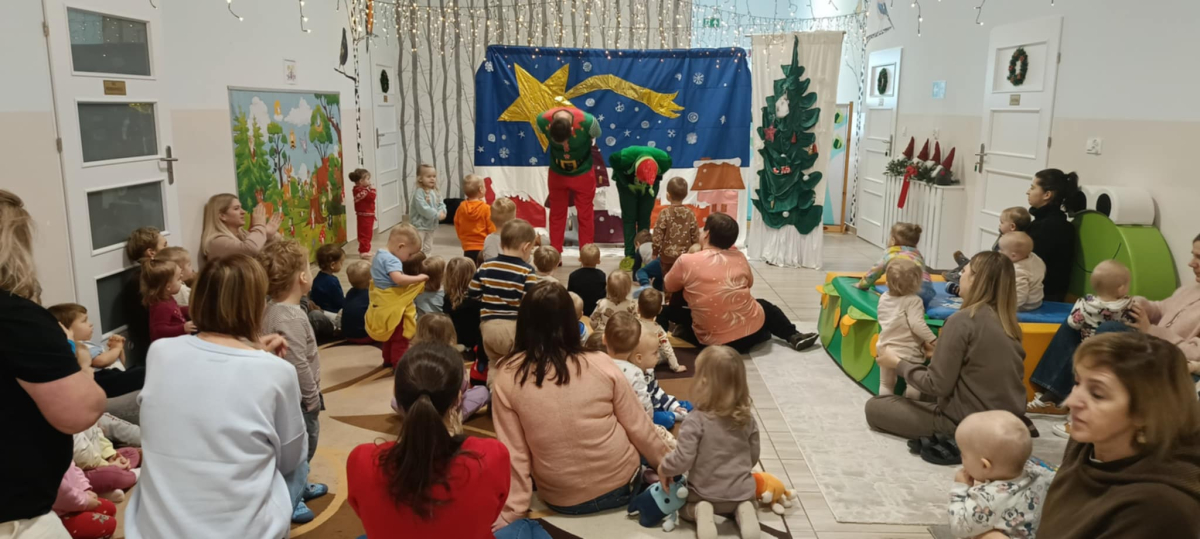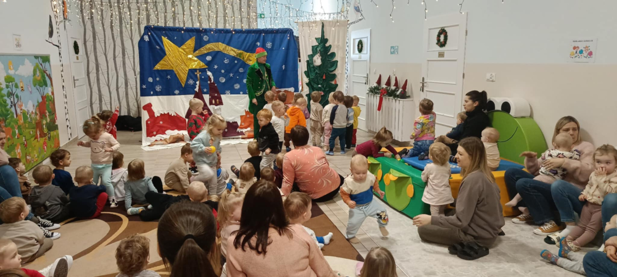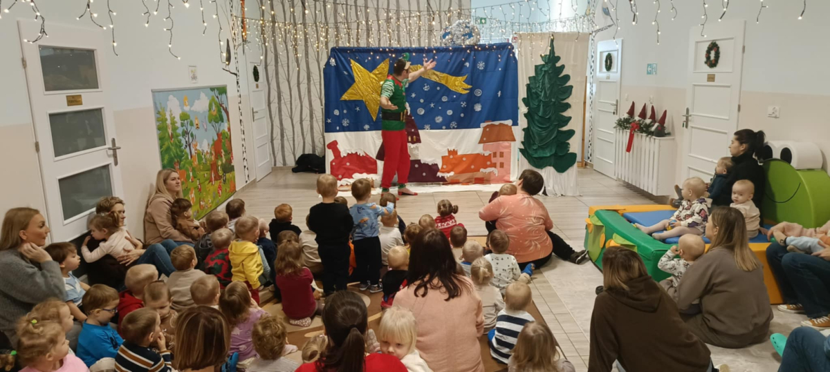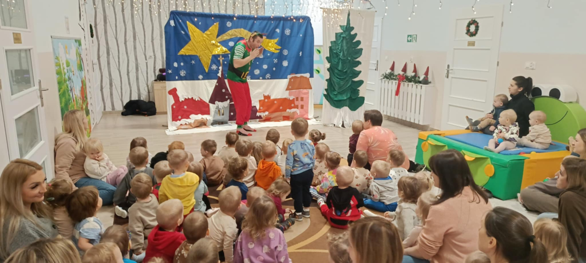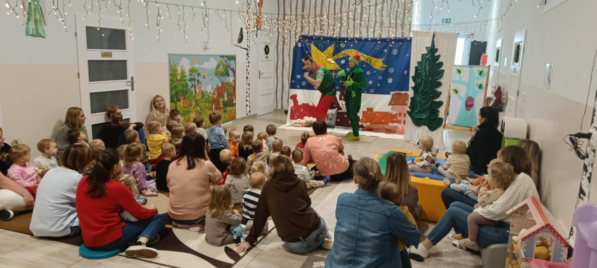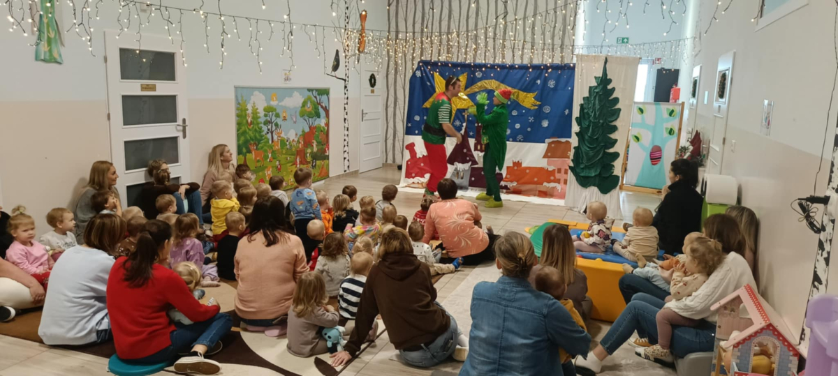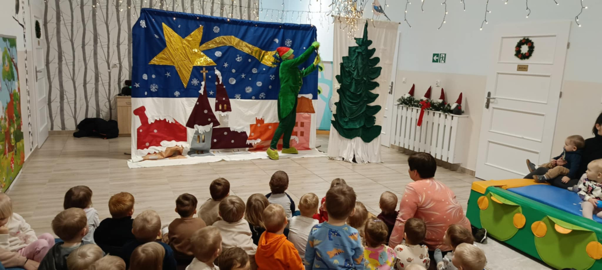 W poniedziałek 12 grudnia 2026 roku w naszym żłobku gościliśmy Studio Artystyczne Bajkowo i Kolorowo z przedstawieniem pt. „Grinch i zaginiona gwiazdka”.