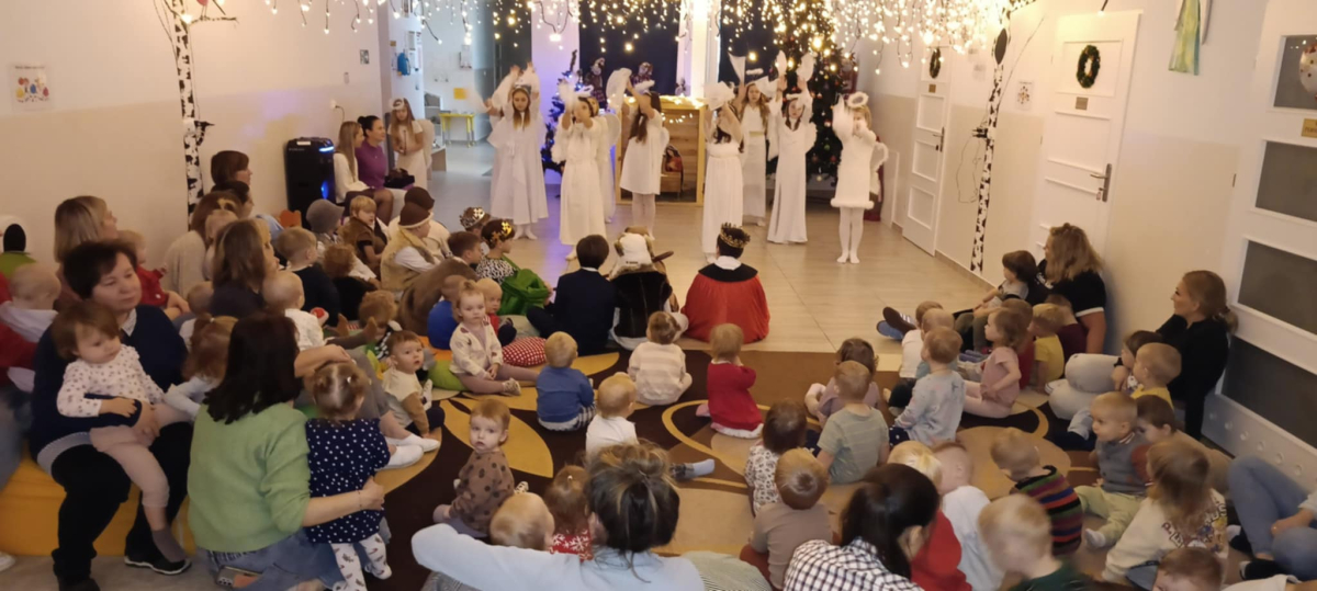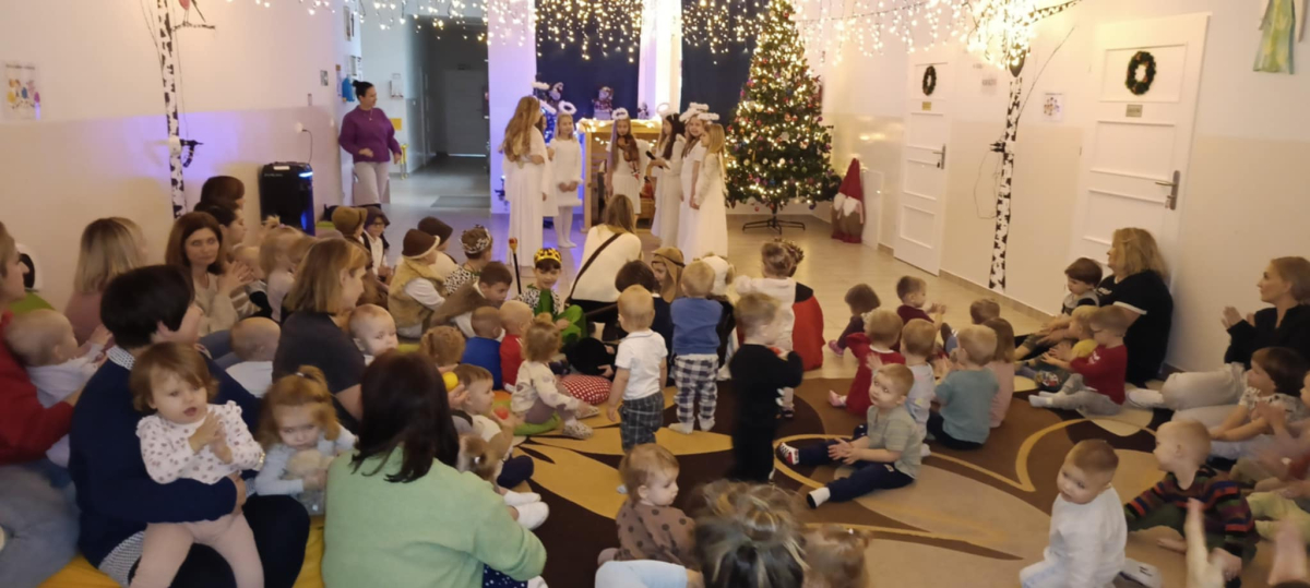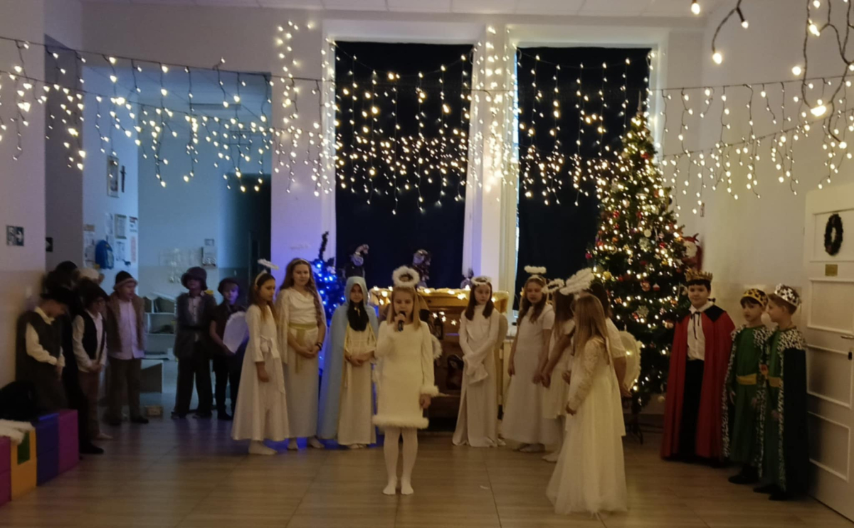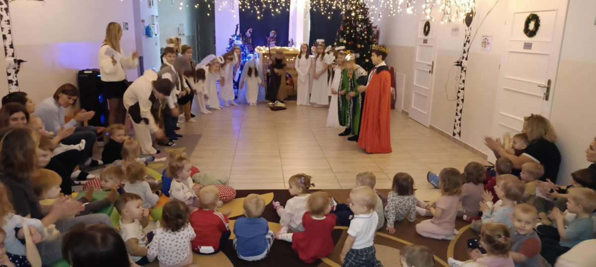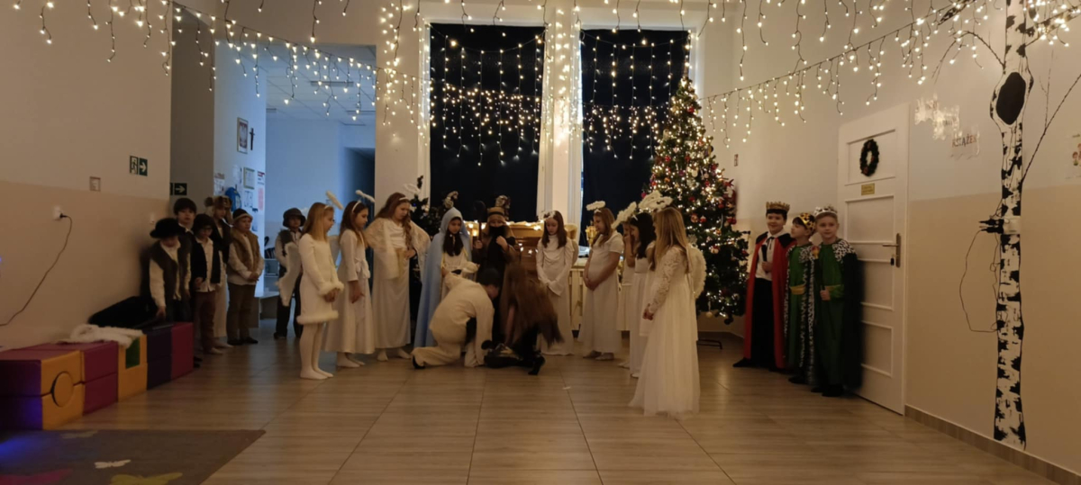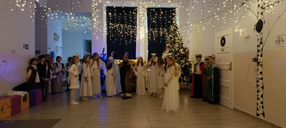 Uczniowie w strojach aniołków, świętej rodziny, pastuszków i króli w prosty sposób opowiedzieli historię narodzin Bożego Dzieciątka. Opowieści tej towarzyszyły piękne kolędy, skoczne pastorałki, a nawet anielskie dźwięki skrzypiec, ku wielkiemu zaskoczeniu maluszków. Podziwialiśmy również wspaniałe taneczne widowisko w wykonaniu aniołków.