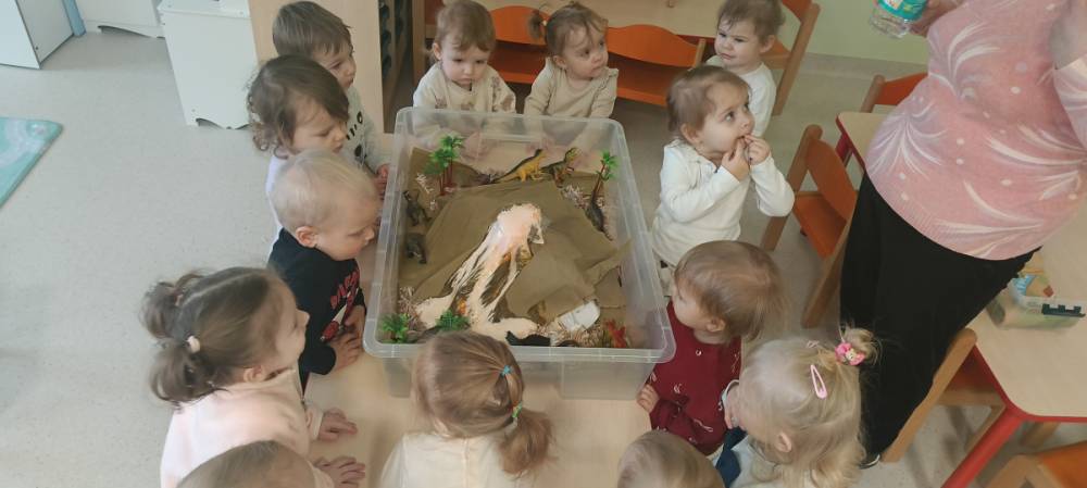 W tym miesiącu obchodziliśmy także wyjątkowe dni tematyczne: Dzień Dinozaura i Dzień Kota, podczas których dzieci brały udział w zabawach ruchowych, plastycznych i integracyjnych. obchodziliśmy także Walentynki.- dzieci z masy solnej wykonały serduszka, które podarowały swoim rodzicom.