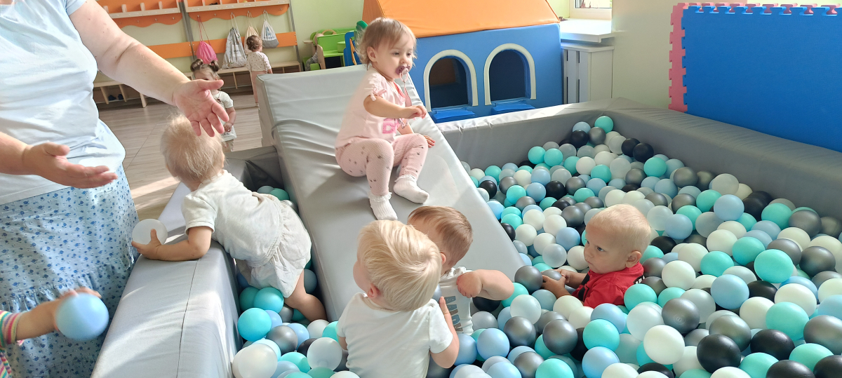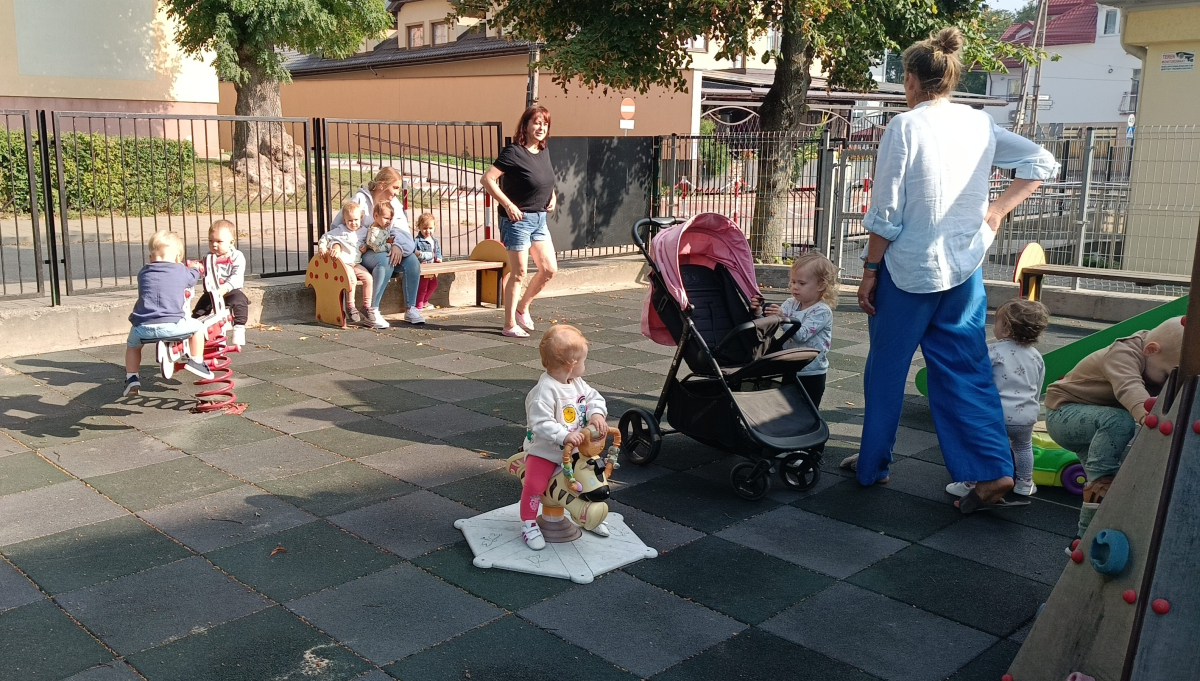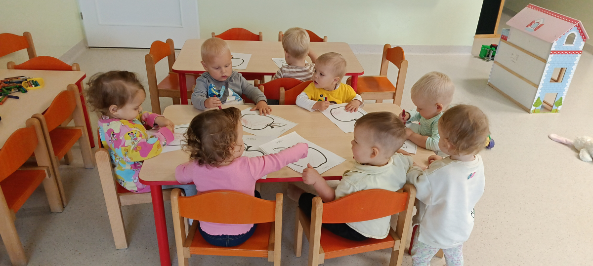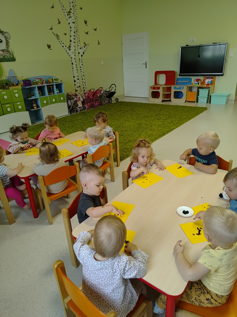 Miesiąc wrzesień w Jeżykach był czasem adaptacyjnym, polegającym na zabawach integracyjnych i poznawczych. Korzystając z pięknej pogody wychodziliśmy na żłobkowy plac zabaw. Nasze pierwsze prace plastyczne można oglądać na tablicy w szatni.Tak minął nam pierwszy miesiąc w żłobku.