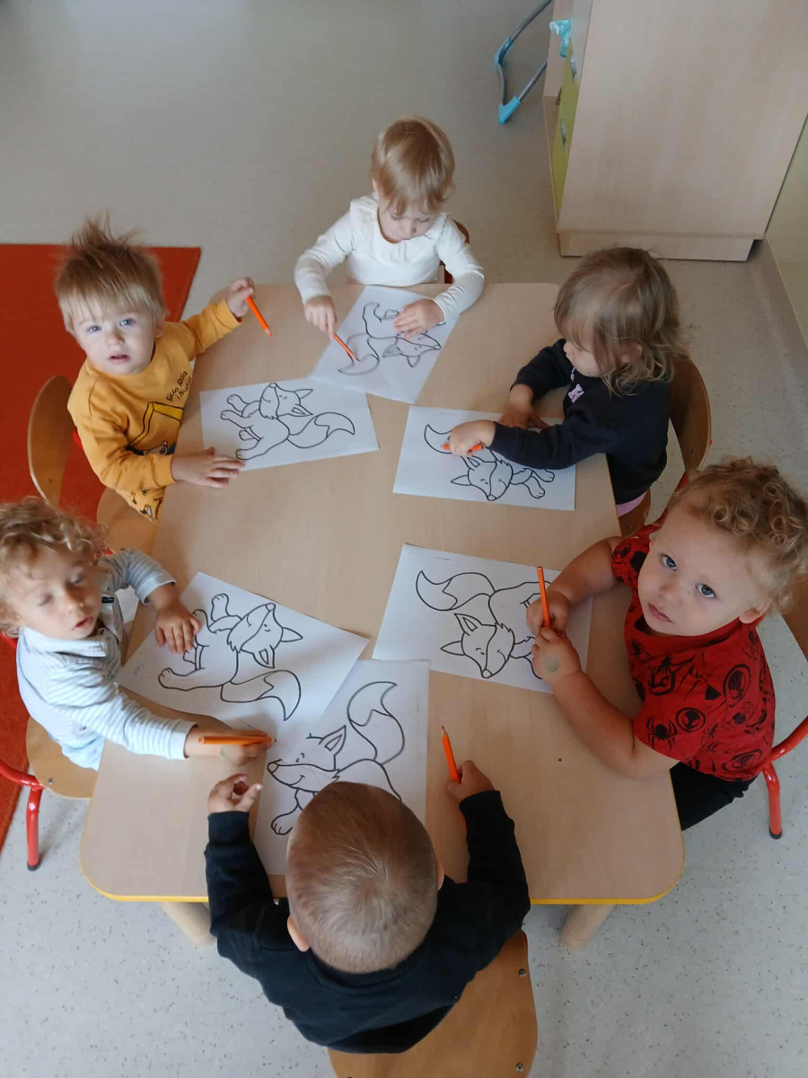 We wrześniu przywitaliśmy w grupie ,,Liski" dziesięcioro dzieci. Podczas zabaw integracyjnych dzieci poznawały swoje imiona i zapoznały się ze swoją salą i zabawkami.