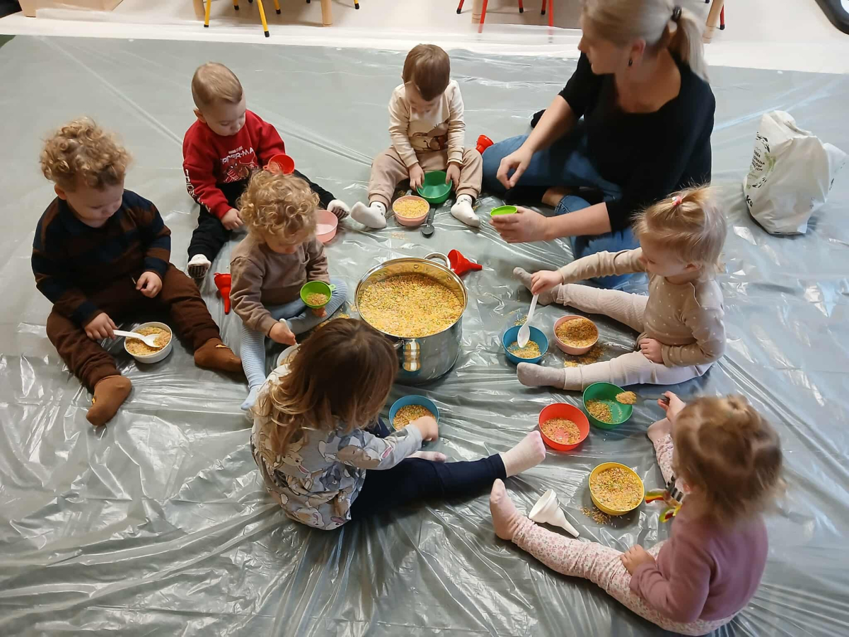 W pierwszych tygodniach miesiąca korzystaliśmy z uroków listopadowej pogody, organizując zimowe zabawy na placu zabaw. Dużo radości przyniosły także zajęcia z sensoplastyki z wykorzystaniem suchego, kolorowego ryżu. Zabawa ta wspierała rozwój poznawczy oraz pobudzała kreatywność najmłodszych.