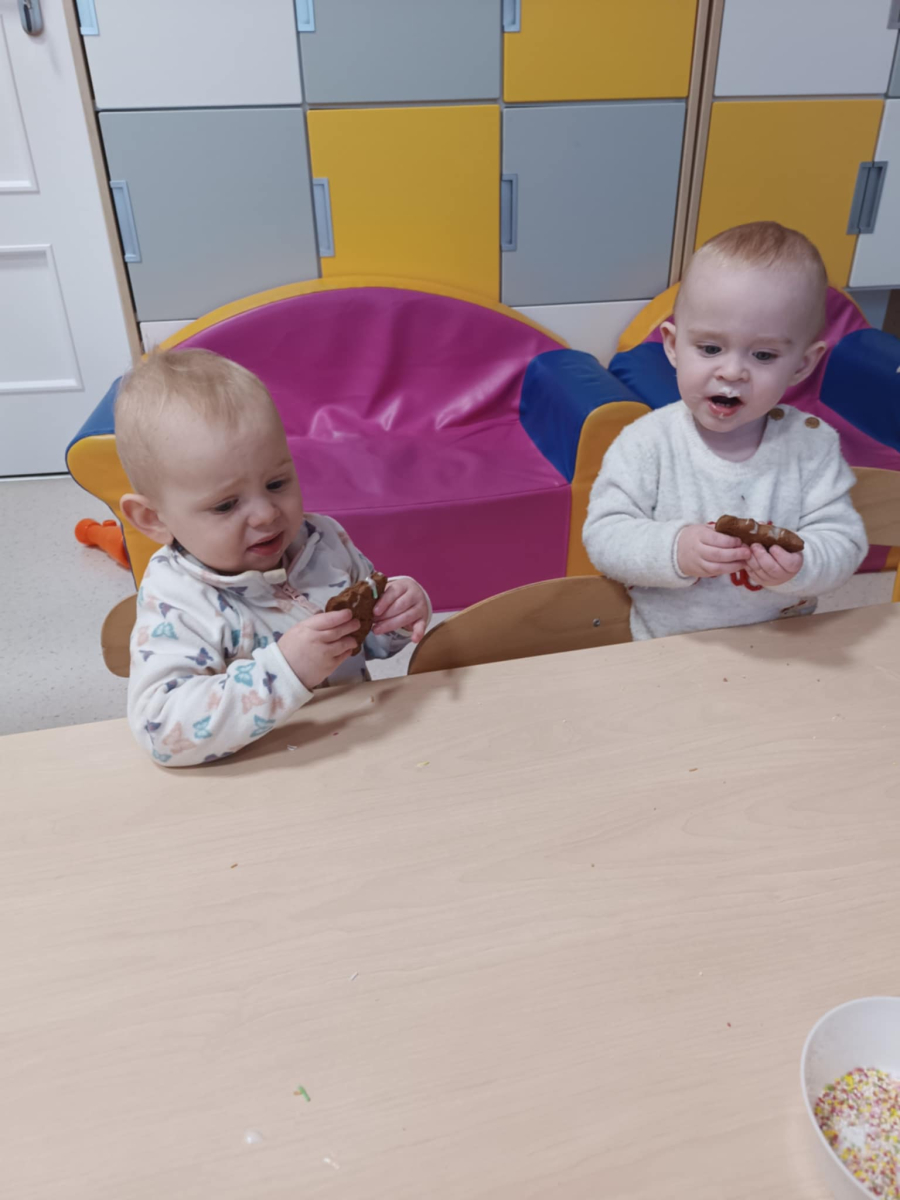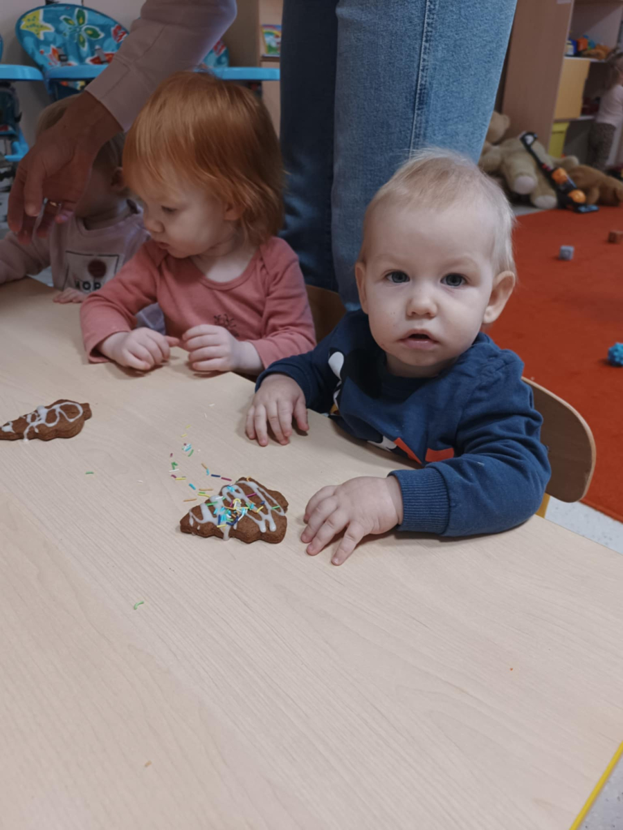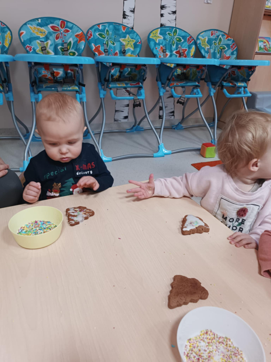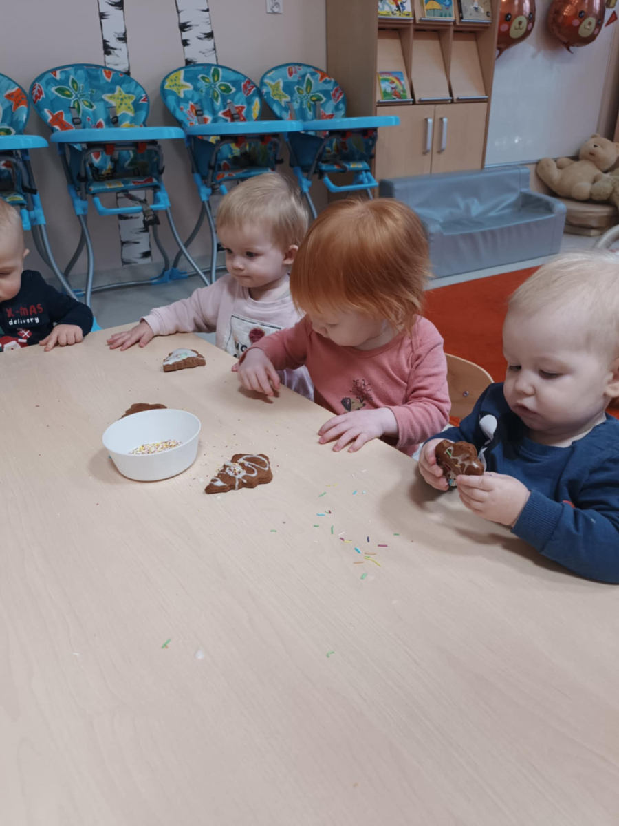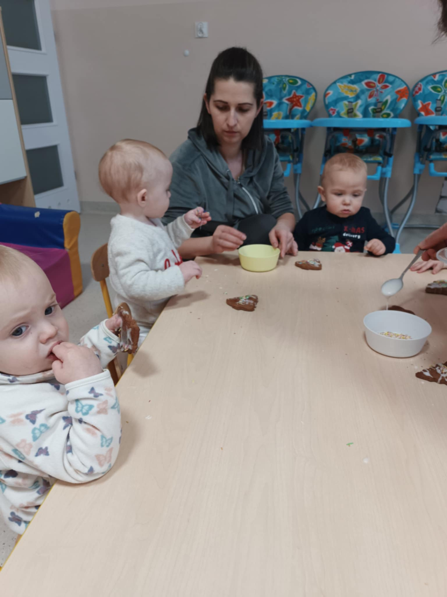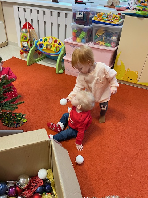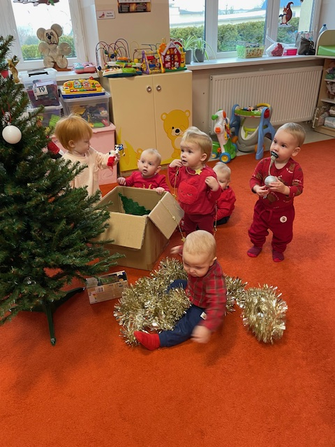 W grudniu Misie aktywnie przygotowywały się do Świąt Bożego Narodzenia. Dzieci świetnie się bawiły w tym wyjątkowym okresie słuchając kolęd i pastorałek. Wykonywaliśmy również prace plastyczne o tematyce świątecznej. 6 grudnia obchodzilismy Mikołajki. W tym dniu zawitał do nas wyjątkowy gość Mikołaj, który obdarował dzieci drobnym upominkiem. W świątecznym nastroju ubraliśmy choinkę. Kolejne ważne wydarzenia, które spotkały nas w tym miesiącu to Jasełka wystawione przez dzieci z Przedszkola nr 2, oraz ,,Występ świąteczny" przygotowany przez uczniów klasy III SP2 w Sokółce. Dzieci bardzo zywiołowo reagowały na oba wydarzenia. Klaskały, poruszały się w rytm muzyki.