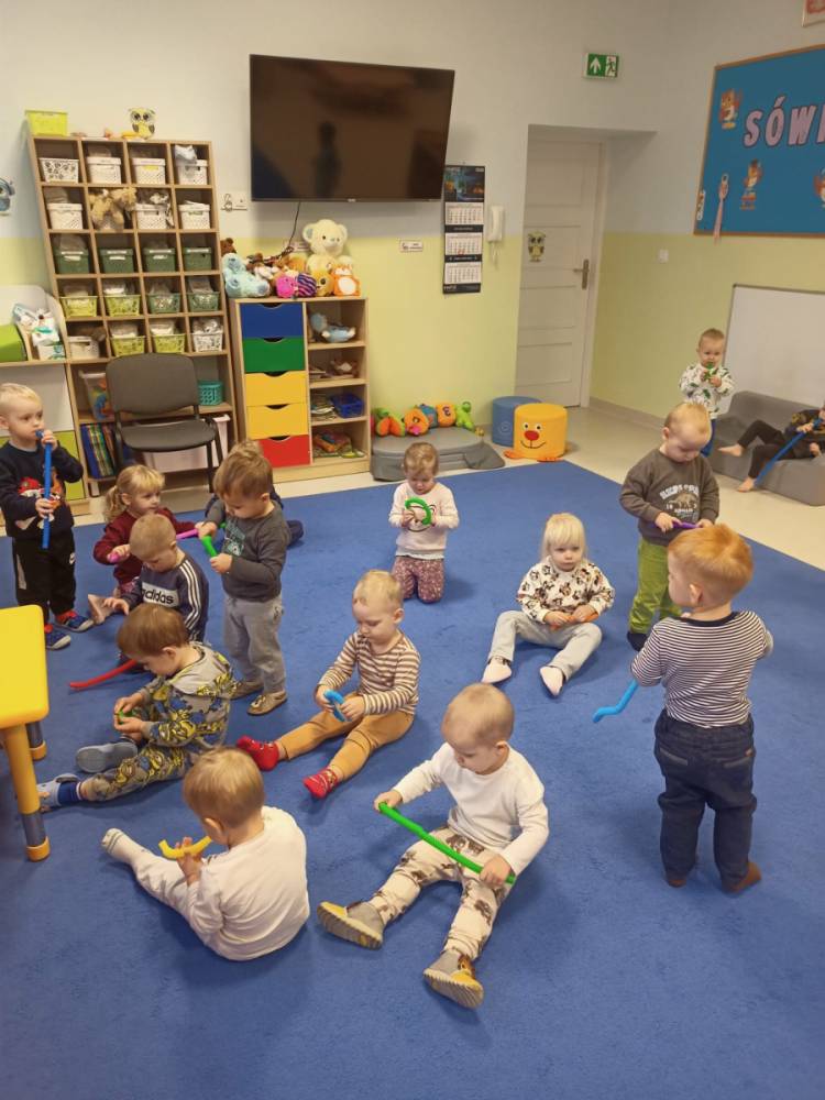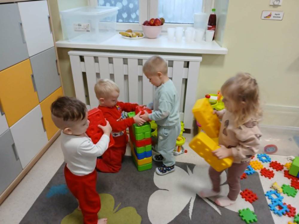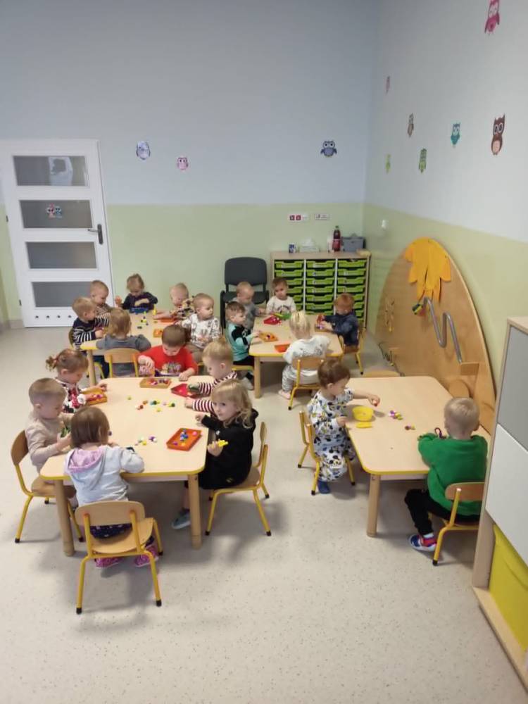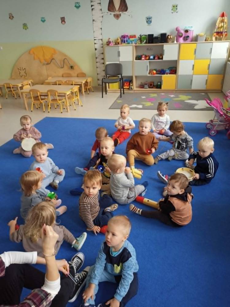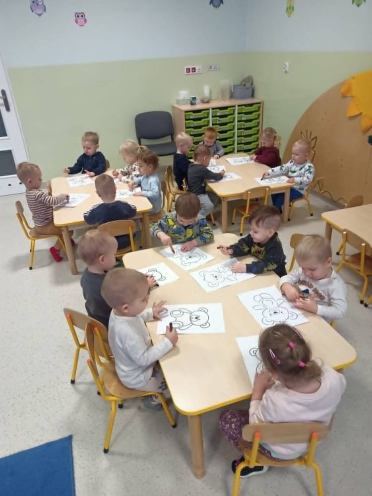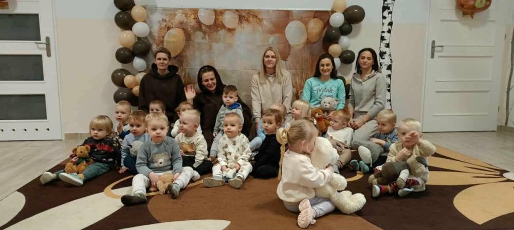 W listopadzie w naszym żłobku,mimo coraz chłodniejszej pogody,panowała ciepła i radosna atmosfera.Dzieci kilka razy wychodziły na spacery,podczas których obserwowały przygotowania natury do zimy.W sali odbywały się różnorodne zajęcia rozwijające nasze umiejętności.Sówki uczestniczyły w zabawach plastycznych,muzycznych,ruchowych,sensorycznych i dydaktycznych ćwicząc motorykę i kreatywność.14 listopada cała społeczność żłobka przyszła ubrana na czerwono,okazując w ten sposób solidarność z ideą budowania bezpiecznego,pełnego szacunku świata dla najmłodszych w ramach projektu ,,Dzieciństwo bez przemocy".W tym dniu mieliśmy zajęcia związane z tą tematyką.Listopad urozmaiciła także bajka muzyczna pt.,,Pipi w krainie bajek".Przedstawienie wzbudziło dużo radości i zainteresowania.25 listopada obchodziliśmy Dzień Pluszowego Misia - każde dziecko mogło przynieść swojego ulubionego misia,który towarzyszył mu podczas zabaw.Były tańce,wspólne zdjęcia i tematyczne aktywności związane z maskotkami.Nasza najmłodsza grupa,czyli Misie w tym dniu obchodziła swoje urodziny,było gromkie sto lat i poczęstunek.26 listopada w ramach projektu ,,Maluszek w Krainie Książek"odwiedził nas gość specjalny,Zastępca Burmistrza Adam Kowalczuk,który czytał dzieciom bajkę. Maluszki z dużym zainteresowaniem słuchały czytanej opowieści.Był to miesiąc pełen ciepłych przeżyć,zabaw i atrakcji,które umiliły jesienne dni.