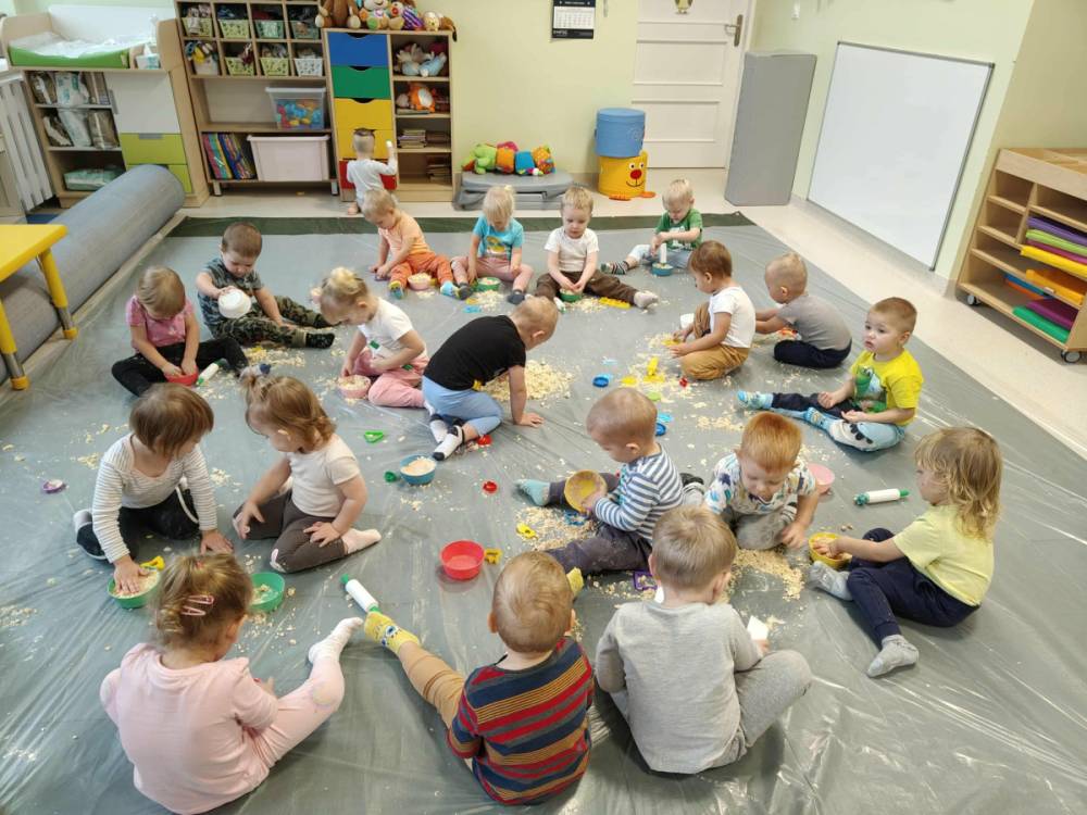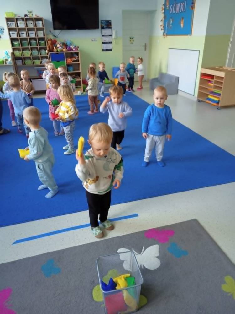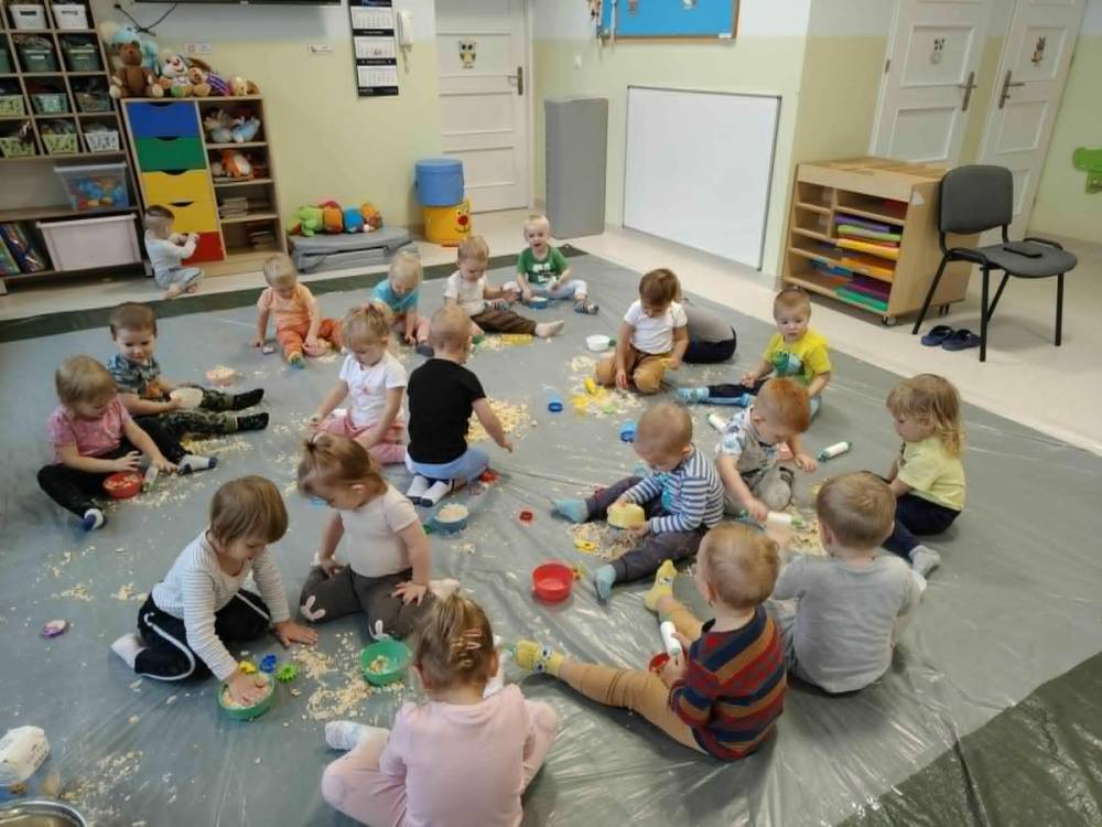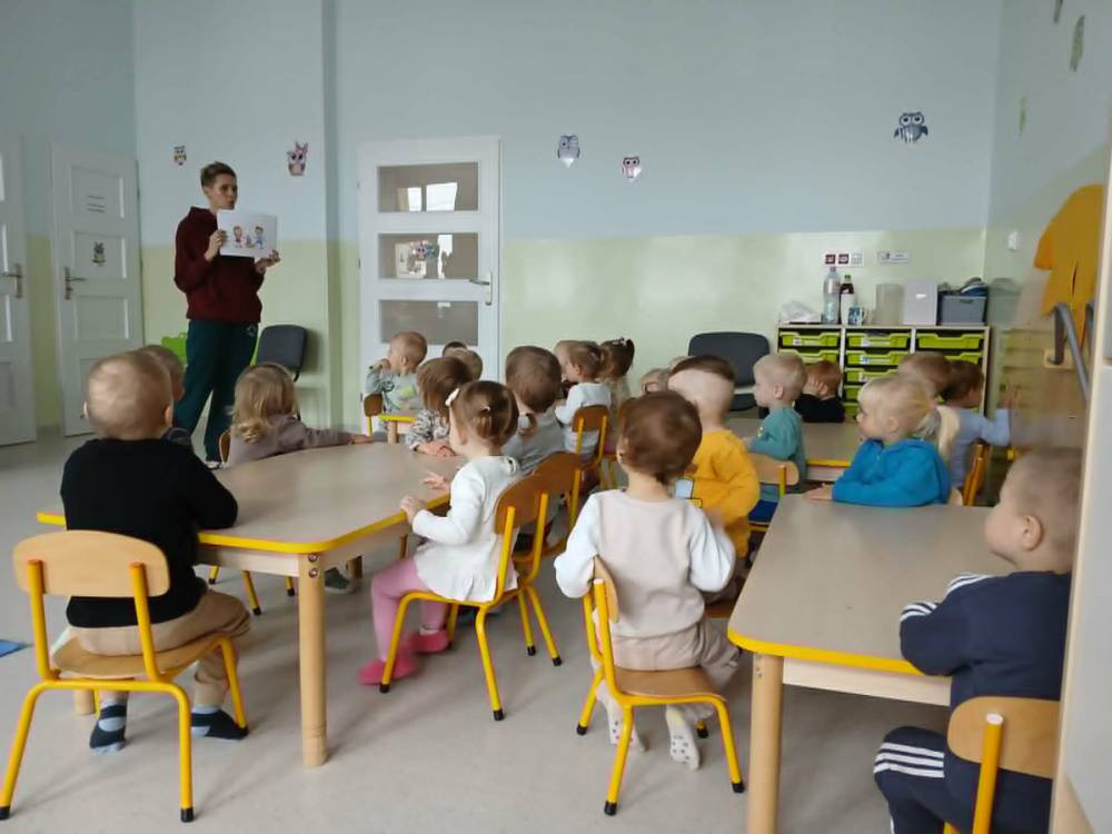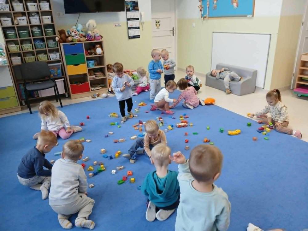 W listopadzie w naszym żłobku,mimo coraz chłodniejszej pogody,panowała ciepła i radosna atmosfera.Dzieci kilka razy wychodziły na spacery,podczas których obserwowały przygotowania natury do zimy.W sali odbywały się różnorodne zajęcia rozwijające nasze umiejętności.Sówki uczestniczyły w zabawach plastycznych,muzycznych,ruchowych,sensorycznych i dydaktycznych ćwicząc motorykę i kreatywność.14 listopada cała społeczność żłobka przyszła ubrana na czerwono,okazując w ten sposób solidarność z ideą budowania bezpiecznego,pełnego szacunku świata dla najmłodszych w ramach projektu ,,Dzieciństwo bez przemocy".W tym dniu mieliśmy zajęcia związane z tą tematyką.Listopad urozmaiciła także bajka muzyczna pt.,,Pipi w krainie bajek".Przedstawienie wzbudziło dużo radości i zainteresowania.25 listopada obchodziliśmy Dzień Pluszowego Misia - każde dziecko mogło przynieść swojego ulubionego misia,który towarzyszył mu podczas zabaw.Były tańce,wspólne zdjęcia i tematyczne aktywności związane z maskotkami.Nasza najmłodsza grupa,czyli Misie w tym dniu obchodziła swoje urodziny,było gromkie sto lat i poczęstunek.26 listopada w ramach projektu ,,Maluszek w Krainie Książek"odwiedził nas gość specjalny,Zastępca Burmistrza Adam Kowalczuk,który czytał dzieciom bajkę. Maluszki z dużym zainteresowaniem słuchały czytanej opowieści.Był to miesiąc pełen ciepłych przeżyć,zabaw i atrakcji,które umiliły jesienne dni.